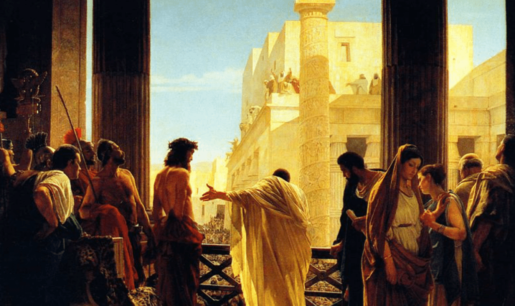 Πιλάτους που θυσιάζουν τον Ιησού, για να παραμείνουν ευάρεστοι στους αρχιερείς.